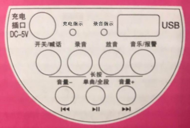 2、錄音:點按錄音按鍵,錄放指示燈閃爍,聲源靠近內(nèi)置咪頭3mm距離,開始錄音。錄音內(nèi)容完成后,再點按錄音鍵即可,此時錄放指示燈常亮,可以喊話。